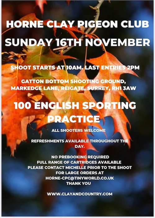 Thank you, from all of us at Horne Clay Pigeon Club for joining us today, it was a lovely sunny day at Gatton Bottom Shooting Ground.